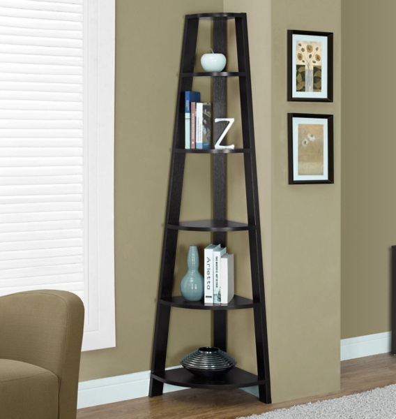 Cappuccino Corner Bookcase With 5 Shelves Kirklands