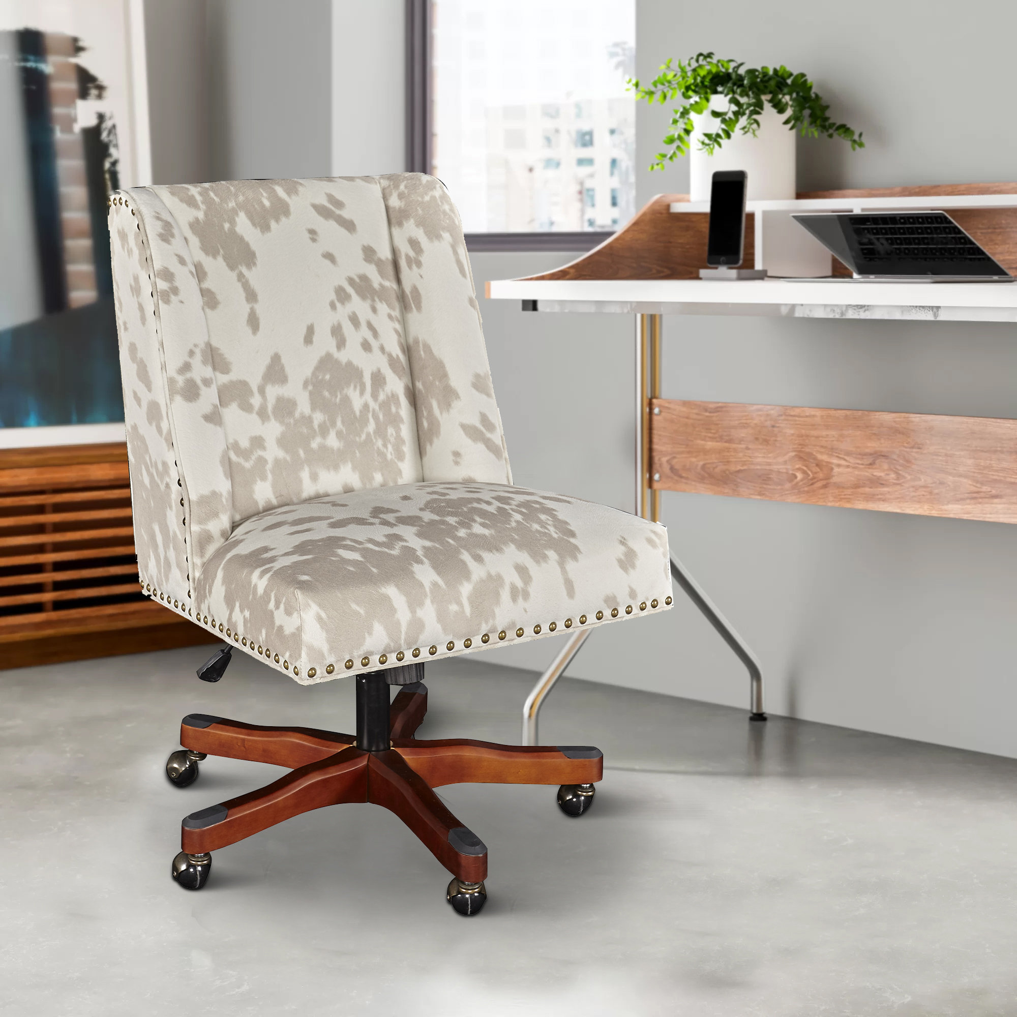 Linon Draper Wood Upholstered Office Chair In Black Cow Print 178404blk01u