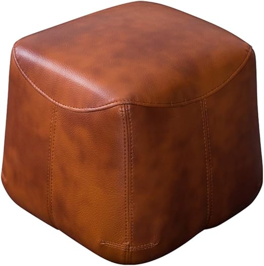Amazon Com Footstool Creative Leather Pouffes Sofa Stool Home Living Room Fashion Lazy Leather Round Stool 30x30x35cm Brown Furniture Decor
