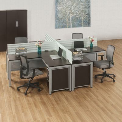 Bush Business Furniture Office In An Hour 4 Person L Shaped Cubicle Workstations In Mocha Cherry Simple Office Furniture