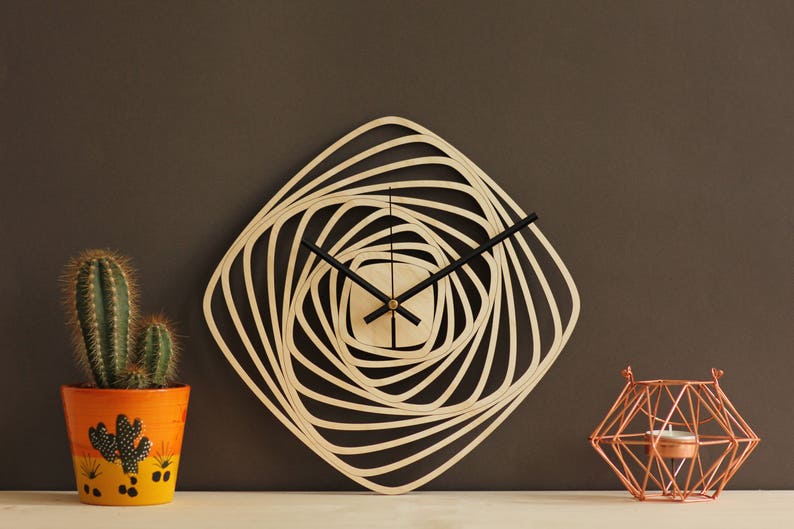 Unique Wall Clock Modern Clocks Geometric Clock Wooden Wall Etsy