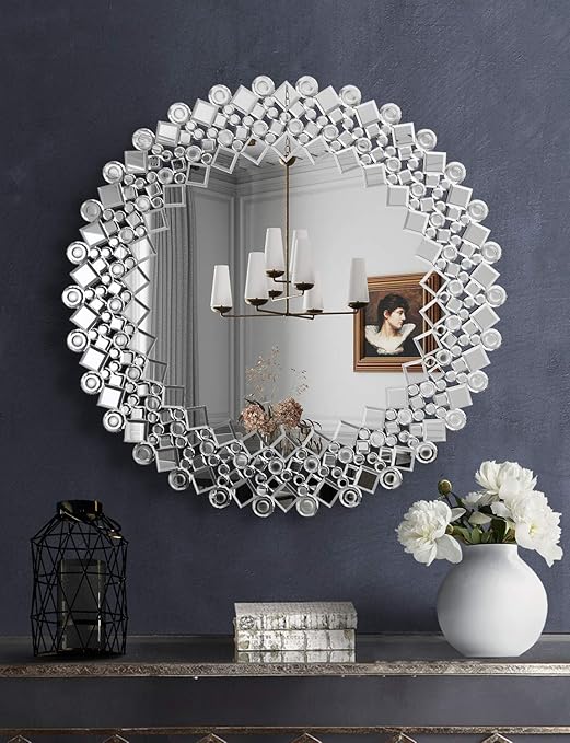 Amazon Com Chic Round Decorative Wall Mirror 31 5 X 31 5 Wall Decor Mirror Round For Bedroom Livingroom Fireplace Home Kitchen