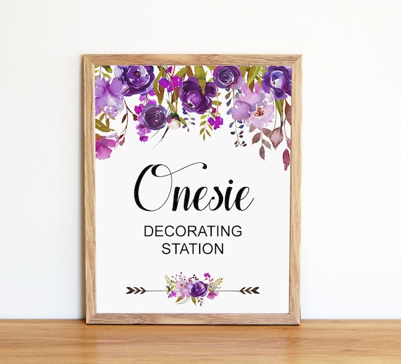 Onesie Decorating Station Sign Purple Baby Shower Activity Decorate A Onesie Sign Boho Floral Instant Download C68 By Strawberry Party Print Catch My Party