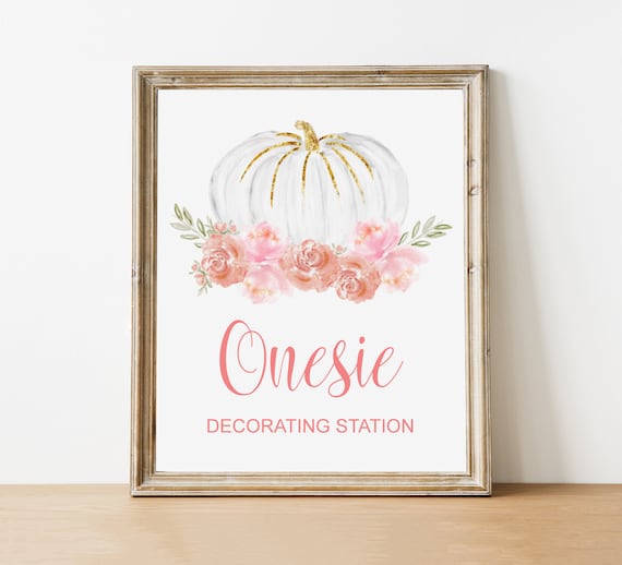 Onesie Decorating Station Sign Pumpkin Baby Shower Decorate A Onesie Sign Fall Baby Shower Decorations White Pumpkin Instant Download C87 By Strawberry Party Print Catch My Party