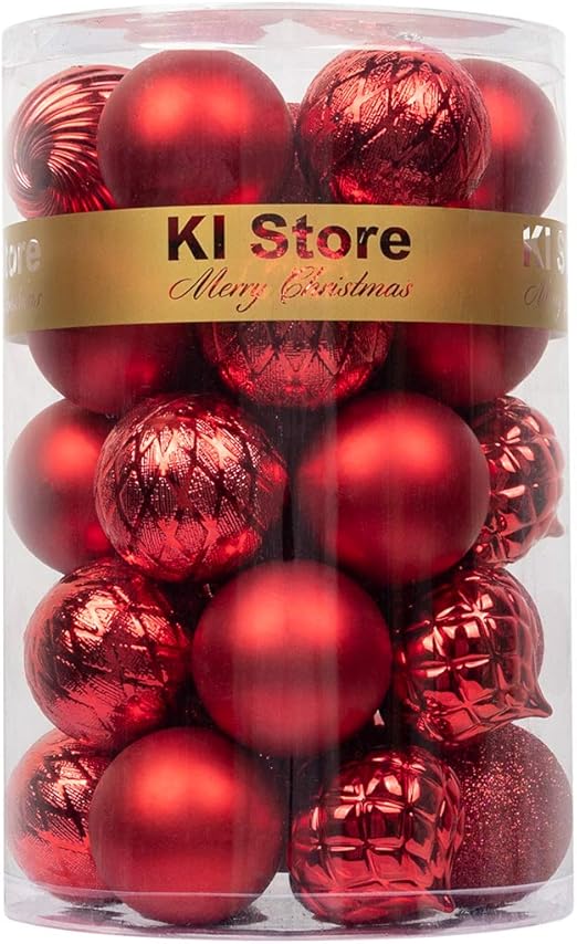 Amazon Com Ki Store Christmas Balls Red Shatterproof Christmas Tree Ball Ornaments Decorations For Xmas Trees Wedding Party Home Decor 2 36 Inch Hooks Included Home Kitchen
