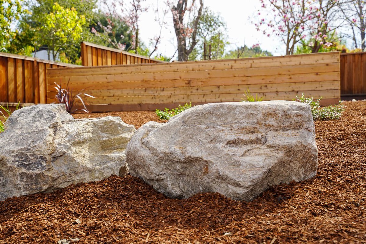 Bay Scenery On Twitter Wood Partition And Decorative Boulders In The Front Yard Https T Co P2pyzkfsgh Bayscenery Landscaping Boulders