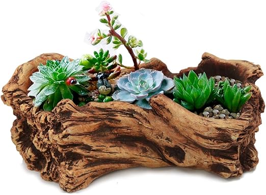 Amazon Com Artificial Driftwood Planter Sculpture Resin Succulent Planter Rustic Cactus Container Flower Pot Driftwood Trunk Stump Log Decorative Planter Pot A Kitchen Dining