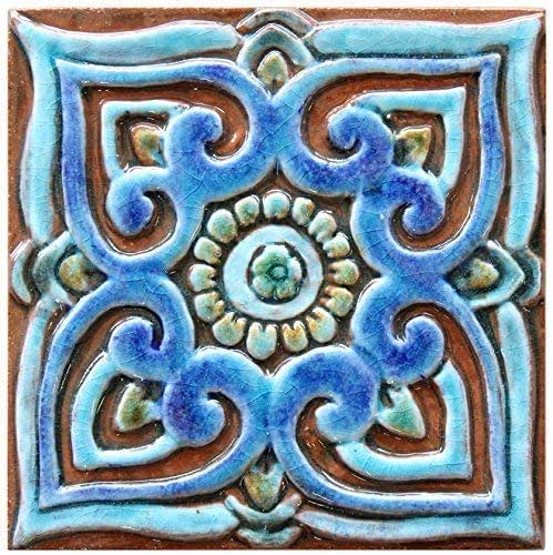 Amazon Com Sculpture Ceramic Tile 5 9 Wall Tile Perfect For Gardens Decorative Tile In Blues And Greens Kitchen Tile Bathroom Tile Tile Art Mandalita Deco 2 Handmade