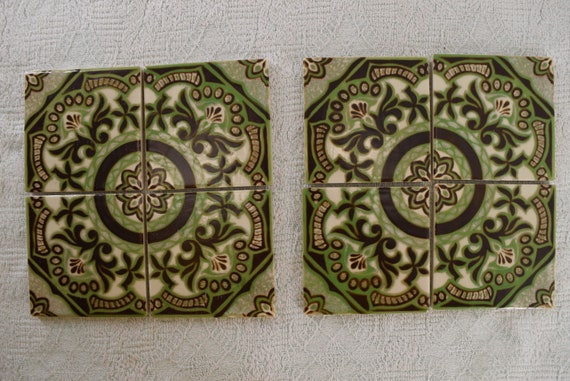 Two Sets Of Four Patterned Ceramic Decorative Wall Tiles Etsy