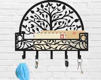 Wall Mount Entryway Mail Envelope Organizer Key Holder Hooks Leash Hanging Coat Rack Letter Newspaper Storage Ornament Home Decorative Floating Shelf