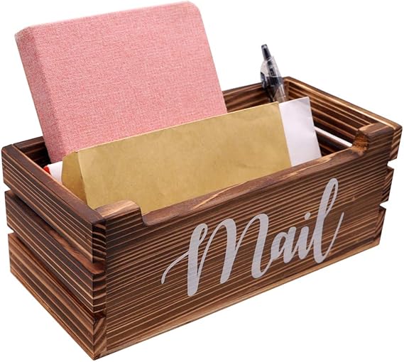 Amazon Com Mainevent Rustic Mail Organizer Decorative Wooden Mail Holder Mail Organizer Countertop Storage Box Office Desk Organizer Rustic Farmhouse Decor For The Home Brown Home Kitchen