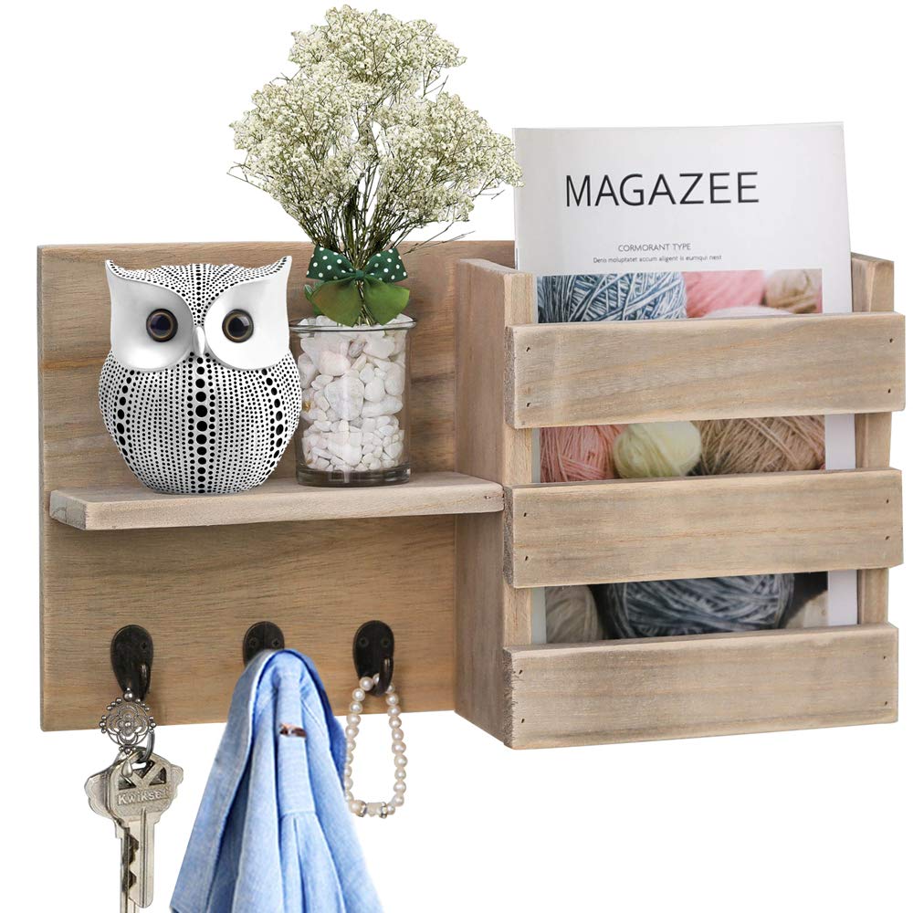 Amazon Com Spiretro Wall Mount Entryway Mail Envelope Organizer Key Holder Hooks Leash Hanging Coat Rack Letter Newspaper Storage Ornament Home Decorative Floating Shelf Country Rustic Torched Wood Grey Home Improvement
