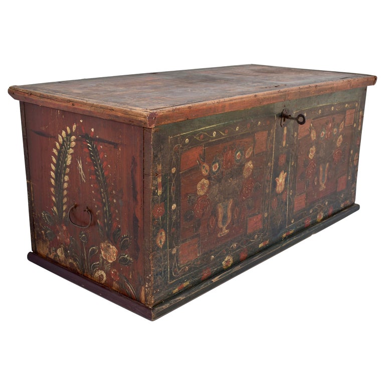 Pine Blanket Chest In Original Decorative Paint For Sale At 1stdibs