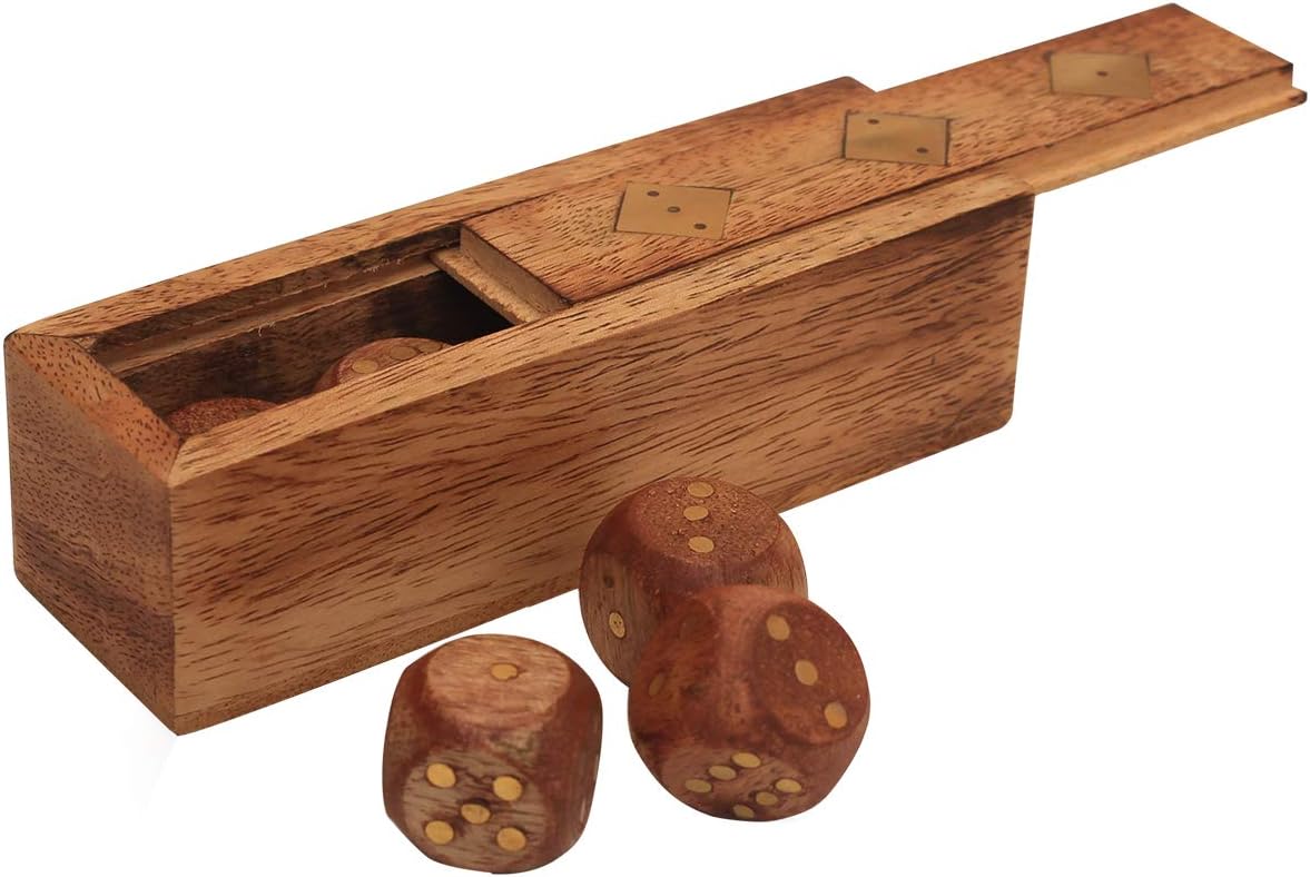 Amazon Com Wood Dice Box With 5 Dice Brass Inlay Decorative Storage Box Dice Board Game With Sliding Lid Best Indoor Outdoor Family Kids Teen Adults Home Tabletop Decor