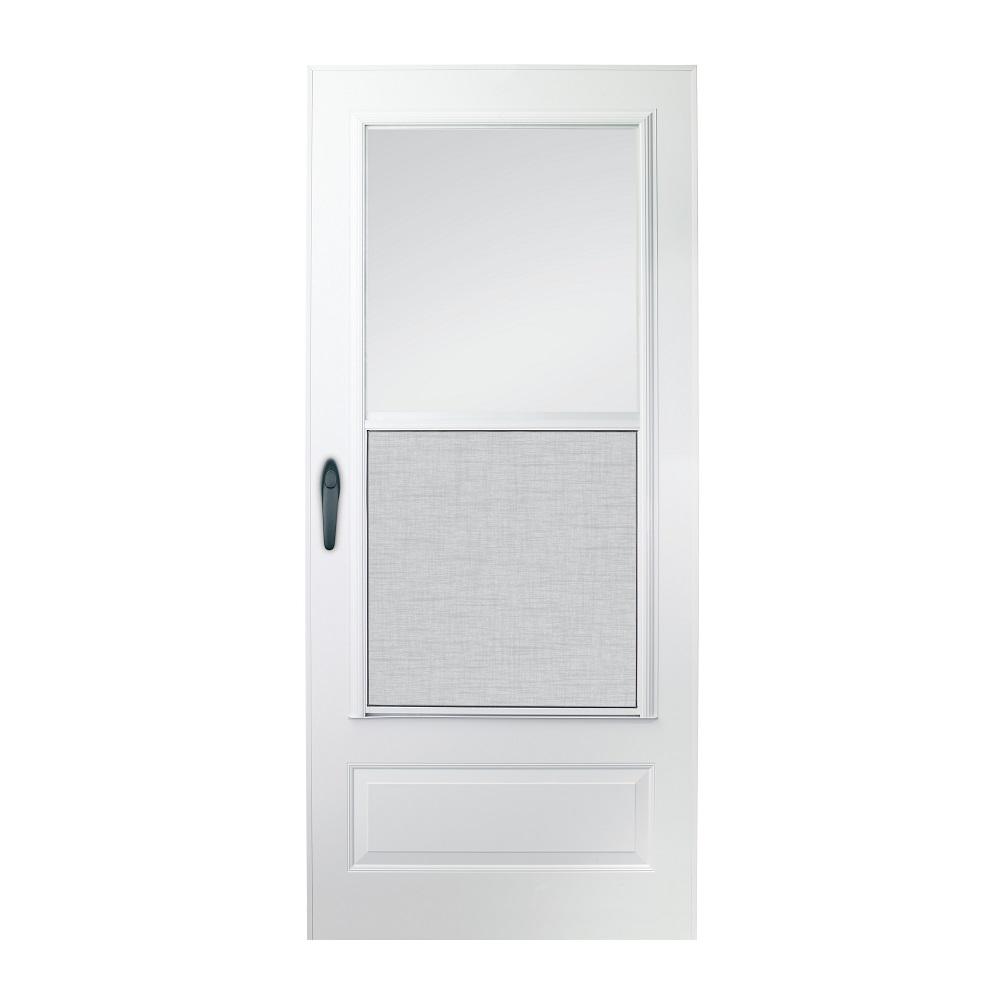Emco 32 In X 80 In 100 Series Plus White Self Storing Storm Door E1tt32wh The Home Depot