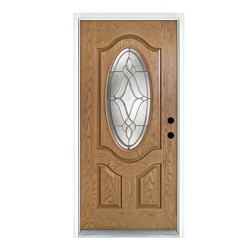 Mp Doors 36 In X 80 In Distinction Light Oak Left Hand Inswing 3 4 Oval Lite Decorative Fiberglass Prehung Front Door N3068l3hdty24 The Home Depot