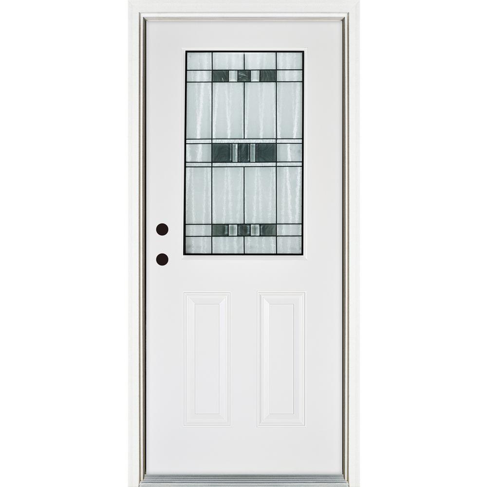 Mmi Door 32 In X 80 In Brentwood Right Hand 2 3 4 Lite 2 Panel Classic Primed Steel Prehung Front Door Exterior Doors Glass Home Depot