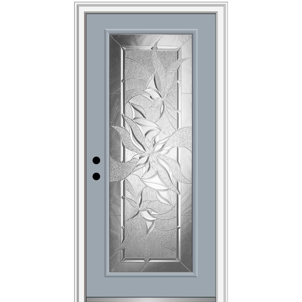 Mmi Door 32 In X 80 In Impressions Right Hand Inswing Full Lite Decorative Glass Painted Fiberglass Smooth Prehung Front Door Z0345395r The Home Depot