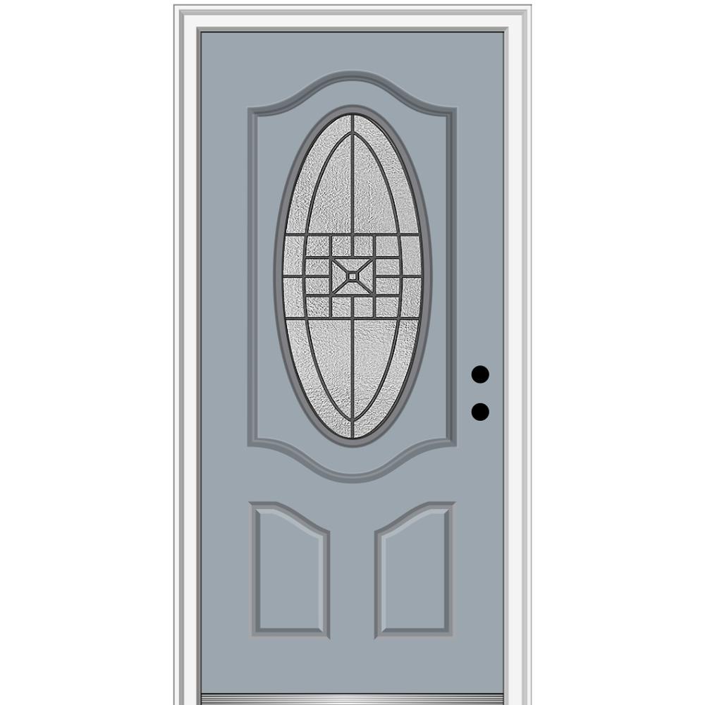 Mmi Door 36 In X 80 In Courtyard Right Hand Oval Lite Decorative Painted Fiberglass Smooth Prehung Front Door 6 9 16 In Frame Z03661490r The Home Depot