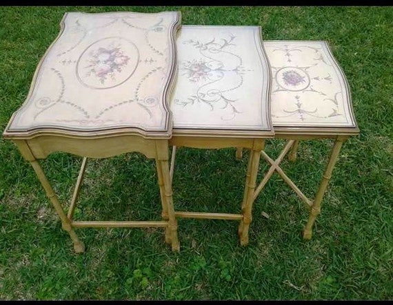 Antique French Nesting Table Handpainted Tables Decorative Etsy