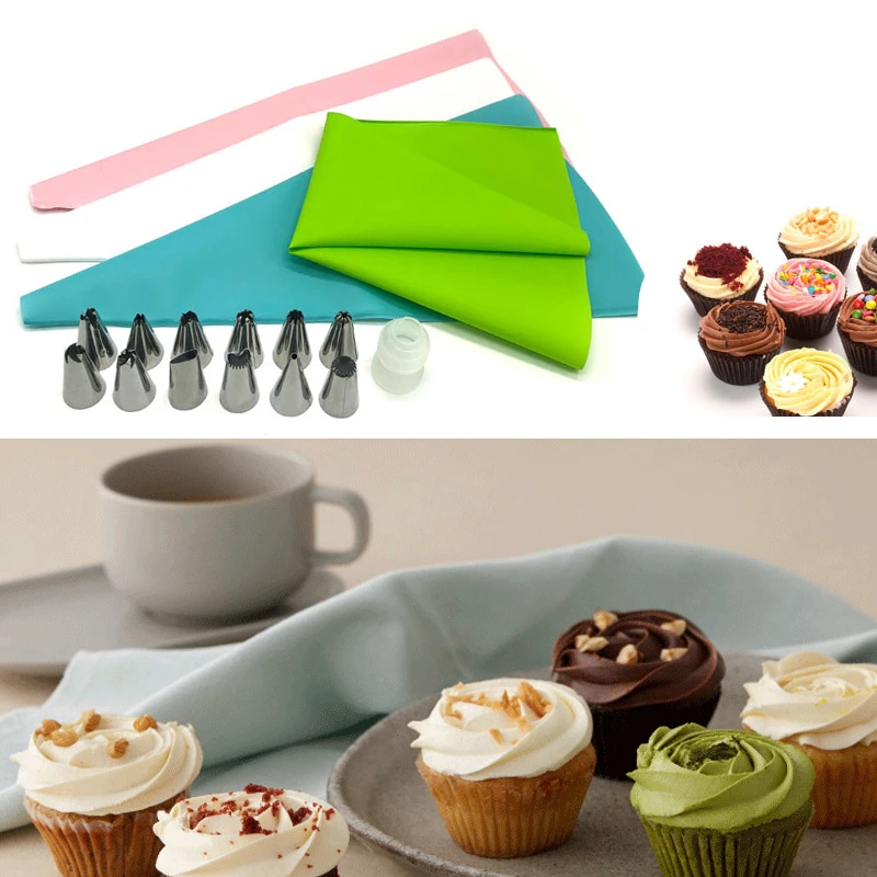 26pcs Silicone Icing Piping Cream Pastry Bag With Stainless Steel Nozzle Set Diy Cake Decorating Tips Kitchen Baking Tools Hot Offer 63823 Cicig