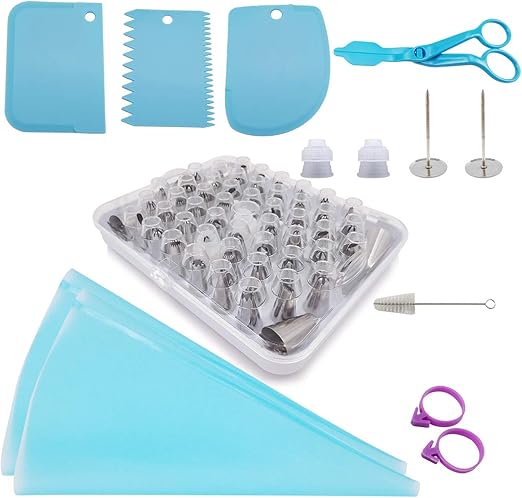 Amazon Com Piping Tips Stainless Steel Cake Decorating Tips Set Icing Tips Set Diy Baking Tools With Reusable Coupler Silicone Pastry Bag Flower Nail Lifter Scissors Scrapers Brush And Hinged Storage Box Kitchen Dining
