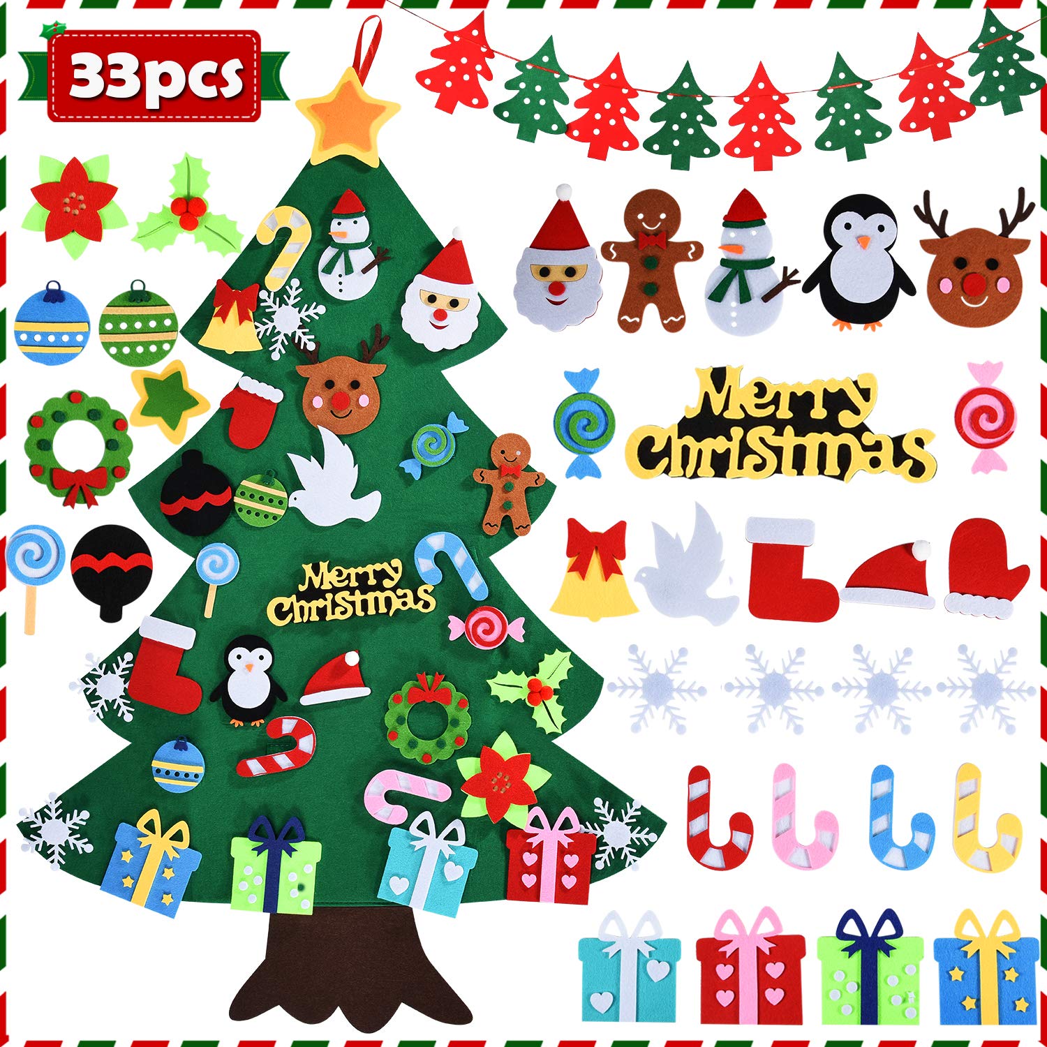 Amazon Com Diy Felt Christmas Tree 33 Pcs Xmas Decorations With Banner Snowflake Snowman Reindeer Candy Crutch Wall Hanging Christmas Decoration Gift For Kids Christmas New Year Party Favors Toys Games