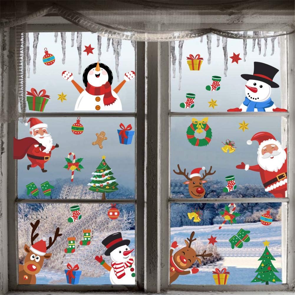 Amazon Com Iarttop Christmas Window Wall Decal Adorable Snowman Santa Claus Reindeer For Window Clings Door Decor Christmas Party Nursery Decoration Arts Crafts Sewing