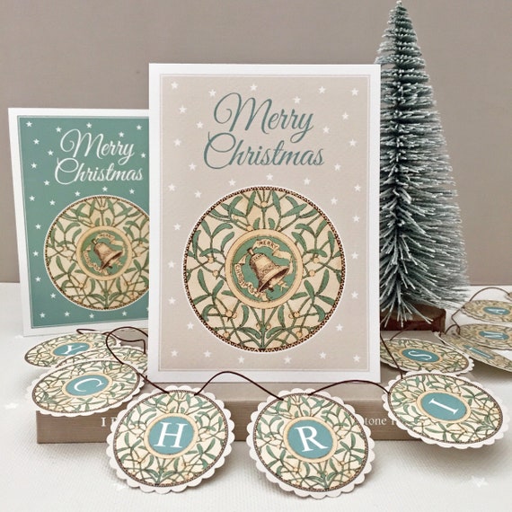 Merry Christmas Garland Card In Duck Egg Or Cream Etsy