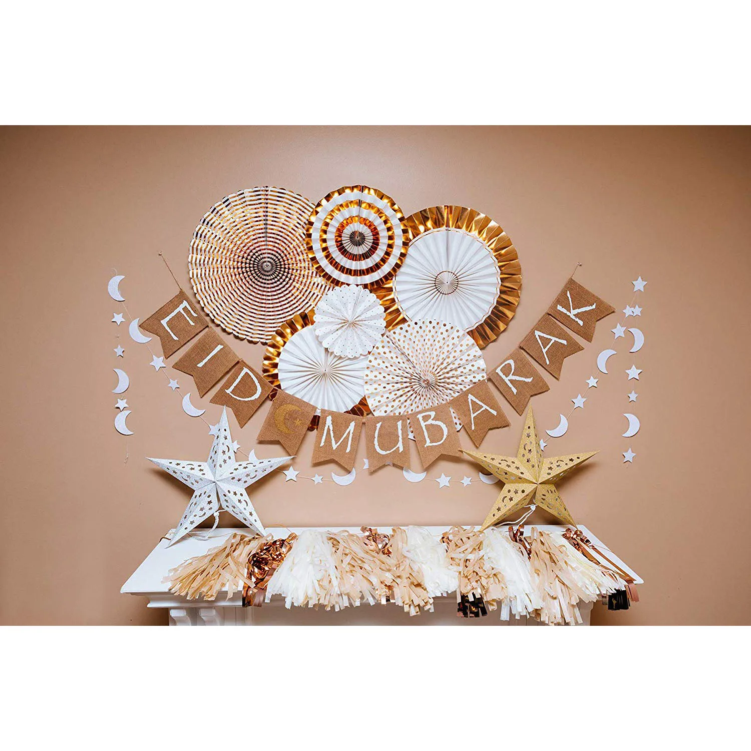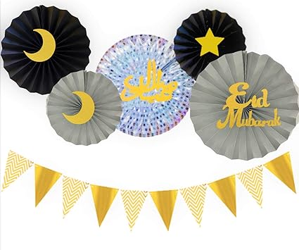 Amazon Com Eid Mubarak 11 Piece Set Decoration Banners And Paper Fans Perfect For Eid Parties And Events Gold Pink Health Personal Care