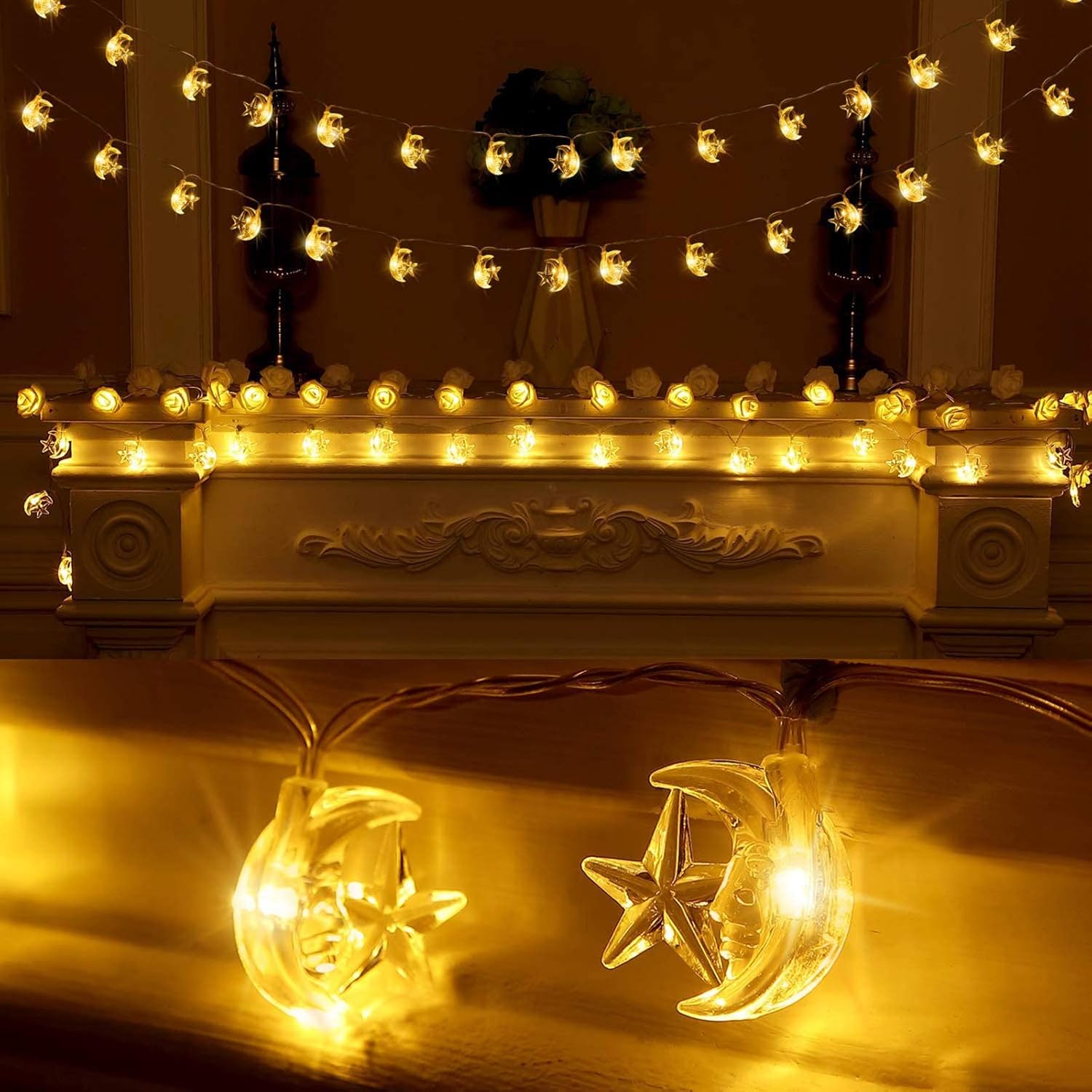 Amazon Com Moon Star String Lights For Eid Decorations 6 6 Ft 20 Leds Ramadan Festival Lights Fairy String Lights Battery Operated Indoor Outdoor Warm White Home Improvement
