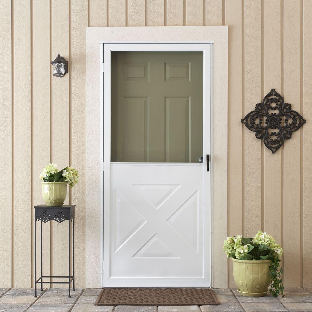 Emco 36 In X 80 In Forever White Universal Store In Door Crossbuck Composite Storm Door Hdpxb36wh The Home Depot Storm Door Glass Storm Doors Door Design