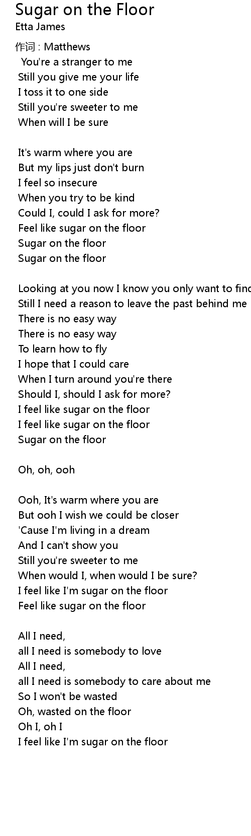 Sugar On The Floor Lyrics By Etta James You Re A Stranger To