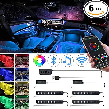 Amazon Com 6pc Led Head 2pc 6ft Fiber Optic Roll Light Kit Xkchrome App Controlled Bluetooth Enabled Automotive Car Truck Dash Door Interior Architectural Home Indoor Accent Flexible W Mounting Tab 5v Advanced Automotive