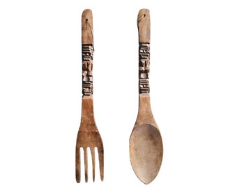 Large Wood Fork Knife And Spoon Kitchen Decor Handmade Etsy