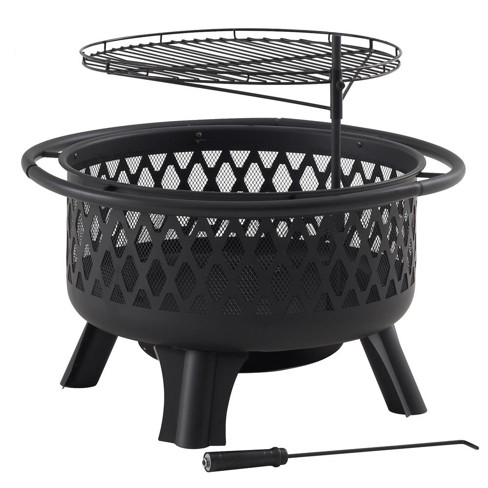 Hampton Bay Piedmont 30 In Steel Fire Pit In Black With Poker Ofw992ra The Home Depot