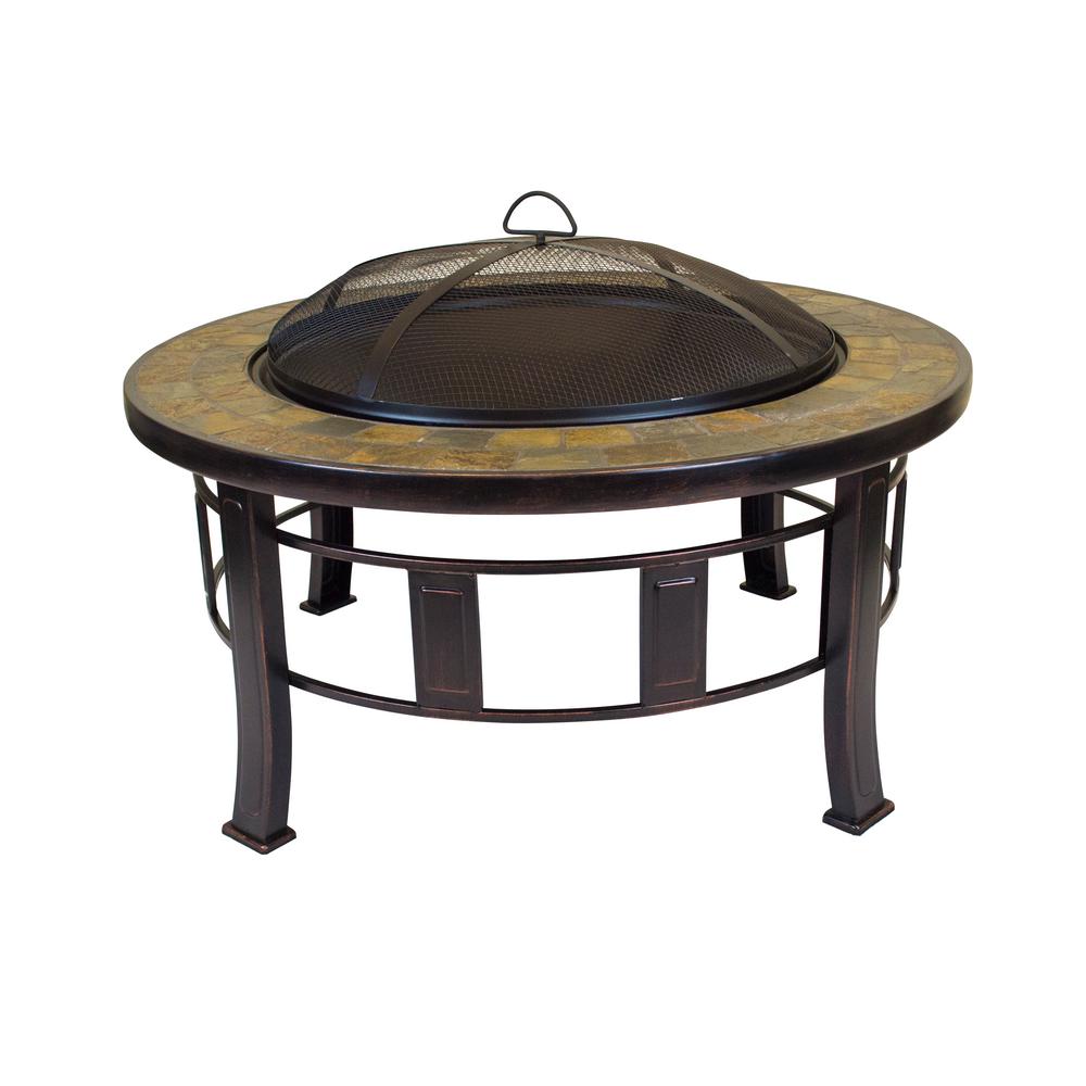 Hampton Bay Sadler 30 In X 19 In Round Steel Wood Burning Fire Pit In Rubbed Bronze Ofw284r Hd The Home Depot