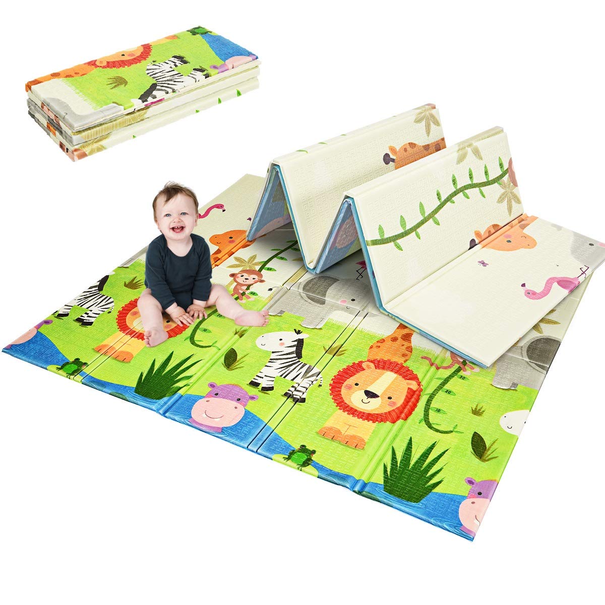 Amazon Com Baby Reversible Play Mat 78 7inchx 59inchx0 4inch Double Sided Crawling Mat Foldable Waterproof Non Toxic Portable Non Bpa Floor Mat For Toddlers Infants Kids Baby