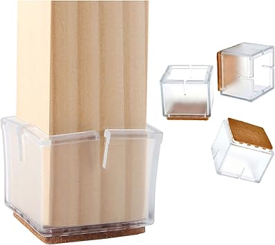 Amazon Com Anwenk Chair Leg Floor Protectors Square Furniture Leg Caps 1 1 4 To 1 3 8 With Felt Pads Clear 16 Pack Home Kitchen