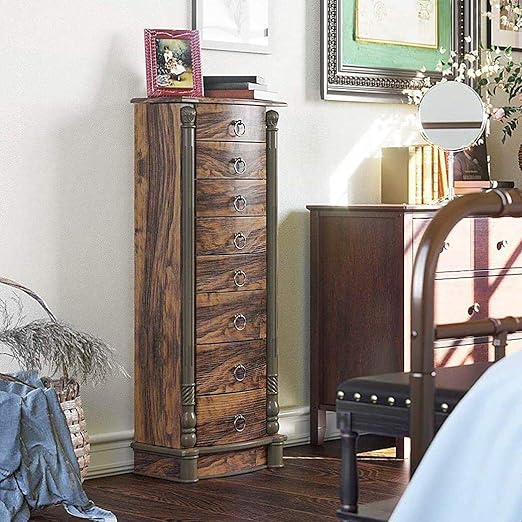 Amazon Com Tomcare Jewelry Organizer Jewelry Cabinet Tilt Angle Adjustable Free Standing Jewelry Armoire Lockable Jewelry Box With Full Length Mirror 2 Drawers Earring Organizer Jewelry Storage Holder Brown Home Kitchen