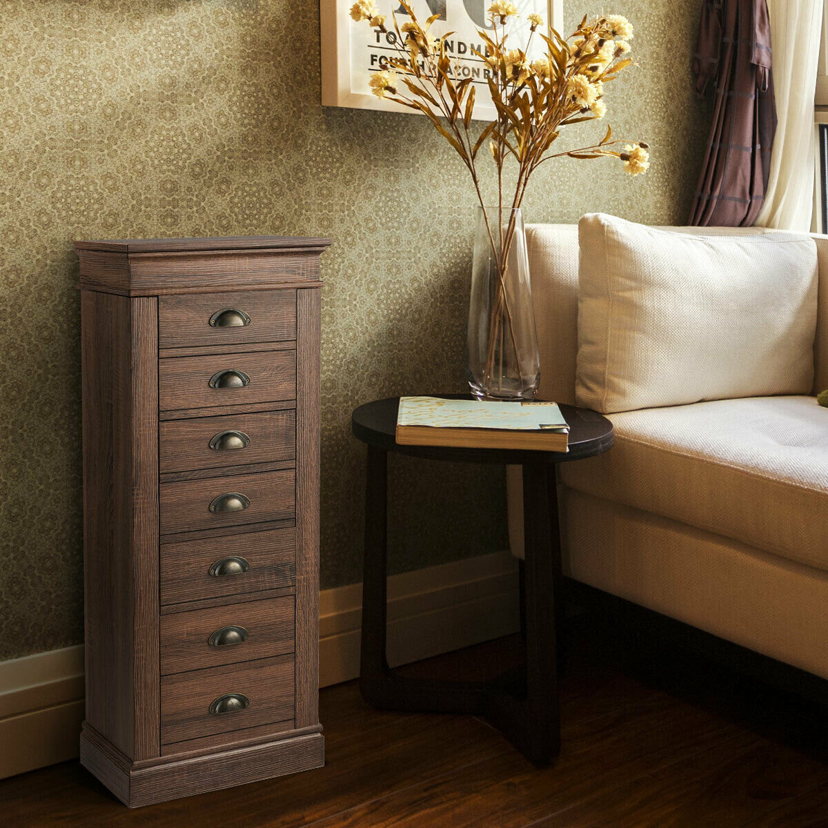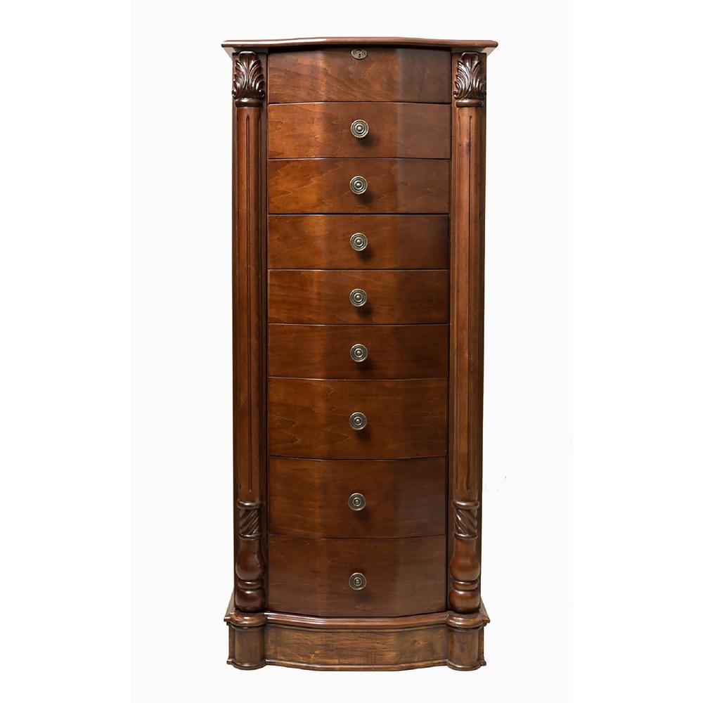 Boyel Living Cherry With Mirror 7 Functional Drawers And 2 Swing Doors Free Standing Jewelry Armoire 17 In X 13 In X 36 In Ma Am171201 The Home Depot