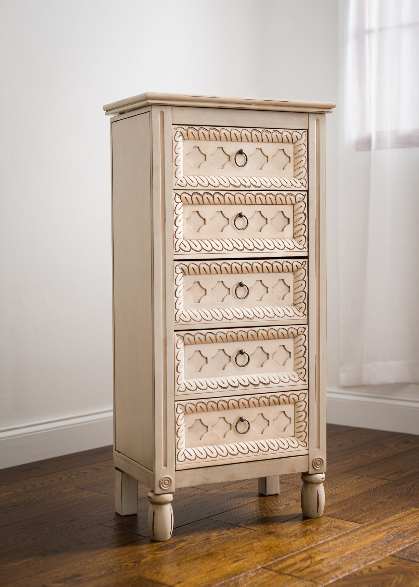 Antique Beige Floor Standing Jewelry Box Cabinet