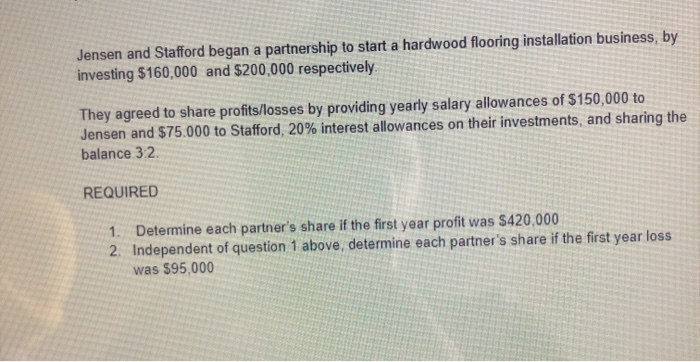 Solved Jensen And Stafford Began A Partnership To Start A Chegg Com