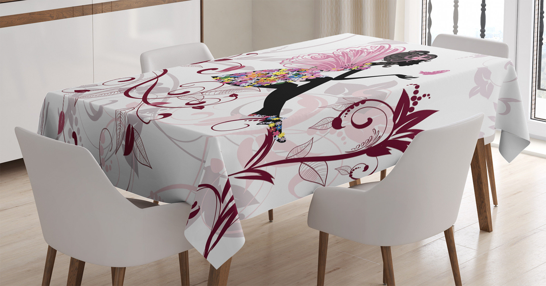 East Urban Home Ambesonne Princess Tablecloth Flower Fairy With Butterflies Wings Branches Ornaments Floral Spring Forest Rectangular Table Cover For Dining Room Kitchen Decor 52 X 70 Maroon Black Pink
