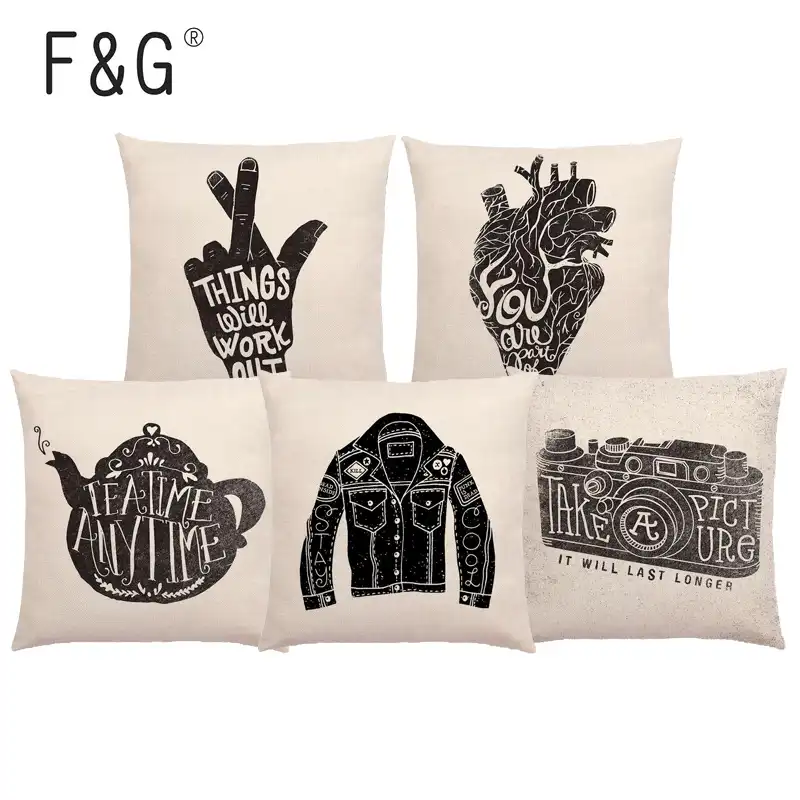 Monochrome Monogrammed Cushion Cover Fun Anchor Camera Teapot Grinder Whale Fox Home Decor Car Sofa Pillowcase Aliexpress