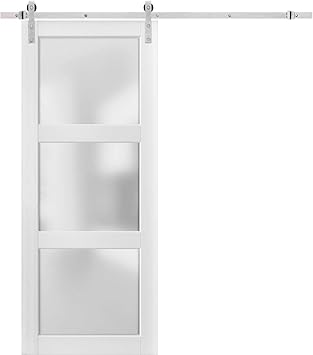 Sturdy Barn Door 18 X 84 Inches Frosted Glass 3 Lites Lucia 2552 Matte White Top Mount Stainless Steel 6 6ft Rail Hangers Heavy Set Solid Panel Interior Doors Amazon Com