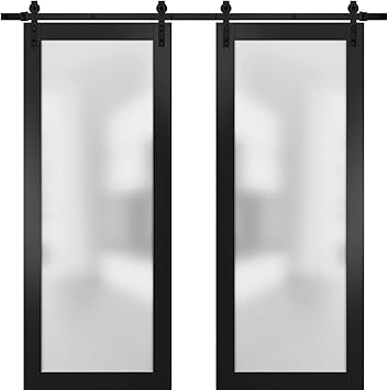 Sturdy Double Barn Door 72 X 96 Inches With Frosted Glass Planum 2102 Black Matte Top Mount 13ft Rail Hangers Heavy Set Modern Solid Panel Interior Doors Amazon Com