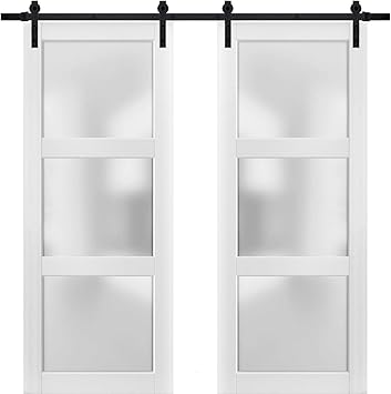 Sturdy Double Barn Door 36 X 84 Inches With Frosted Glass 3 Lites Lucia 2552 Matte White Top Mount 13ft Rail Hangers Heavy Set Solid Panel Interior Doors Amazon Com