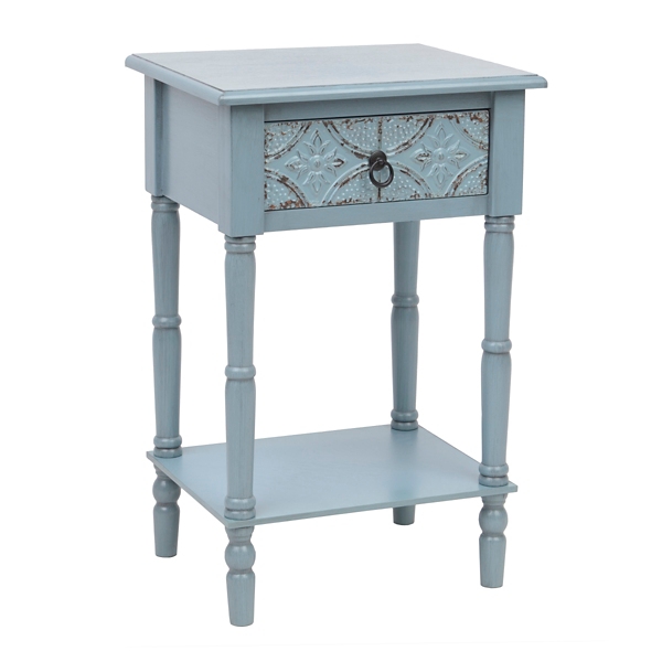 American Folklore 20 Antique Blue Accent Table W Drawer Cabinet By Jofran Furniture