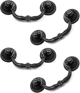Farboat 4pcs Bail Pull Handles Traditional Antique Vintage Hardware For Furniture Cabinet Drawer Dresser With Mounting Screws Hole Centre 64mm 2 5inch Black Amazon Com